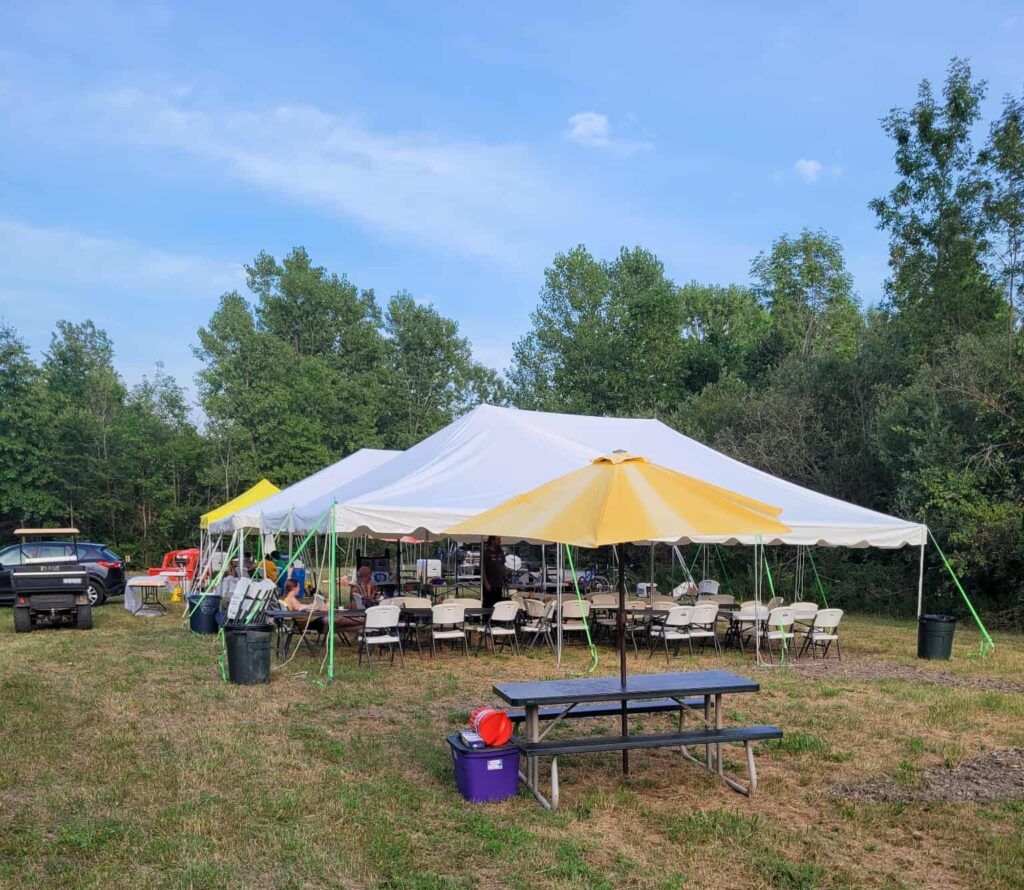 The gravel service road is between 1200 New Road and 1190 New Road. There will be signs posted and the gate will be open the day of the event. Follow the gravel road until you see signs for parking, past the first curve.